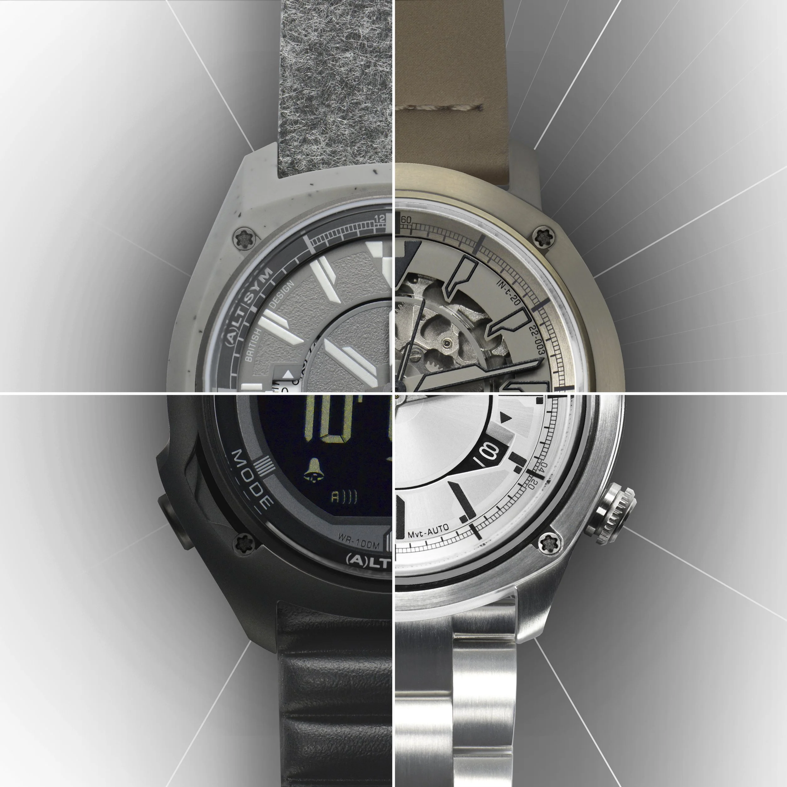 a project packed with integrity and a love for horology that introduces a new approach to symmetry in dial design, within a modular case. It aims to offer true value to the market, with a mindful approach to material choices. Packed with details and character, ALTERNATIVE SYMMETRY features a simple yet effective locking system. It uses four everyday TORX SCREWS, which not only serve a functional purpose but also allow users to transform the watch's appearance, ensuring the screws are more than just decorative