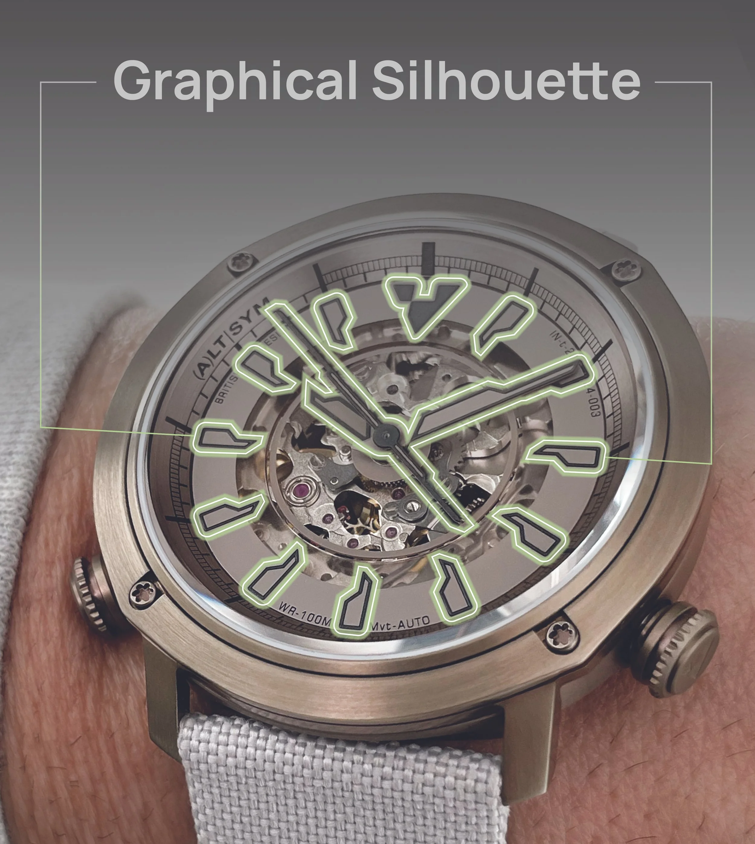 as we move ahead, this unique dial and hand silhouette will establish a powerful identity for all future designs, firmly embedding itself in the DNA of ALTERNATIVE SYMMETRY. Our approach will embrace creativity, allowing designs to evolve both within and beyond this signature shape. This ongoing exploration ensures that we maintain a strong and authentic identity that reflects our brand’s vision