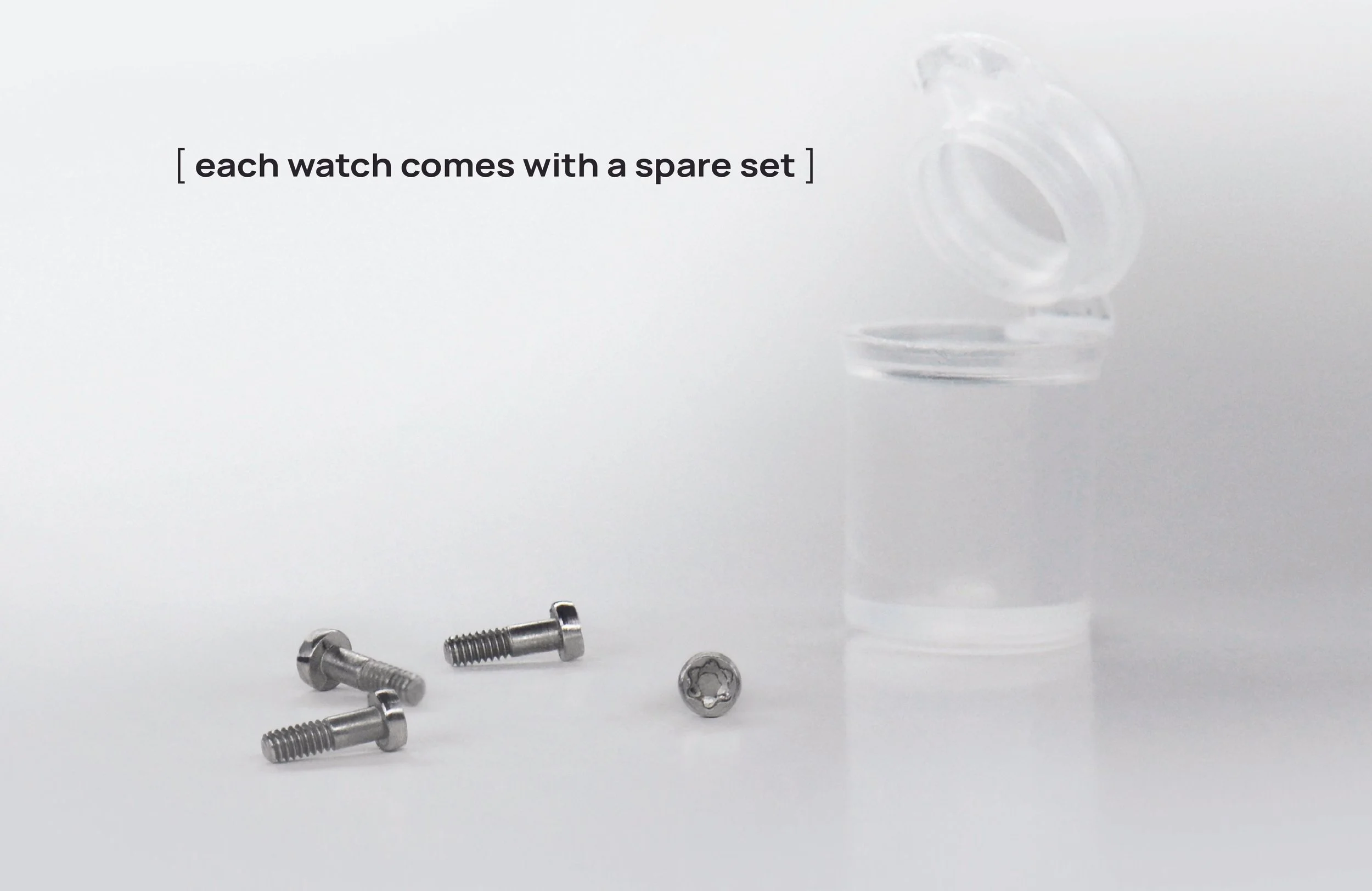 Each watch comes with four extra TORX SCREW’s, so you’ll always have spares in case any get misplaced. These additional screws are conveniently packaged in a stylish storage capsule, making it easy to keep them organized
