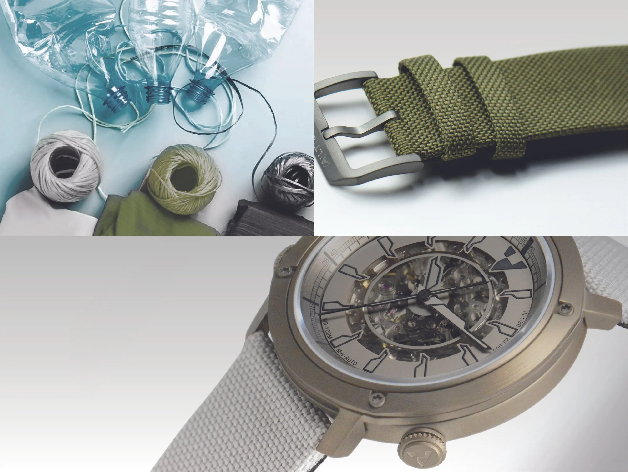 we offer canvas-style straps made from recycled PET bottles, a durable and versatile material that outlasts cotton and linen while drying quickly. This sustainable approach significantly reduces environmental impact by using less energy in production and limiting greenhouse gas emissions
